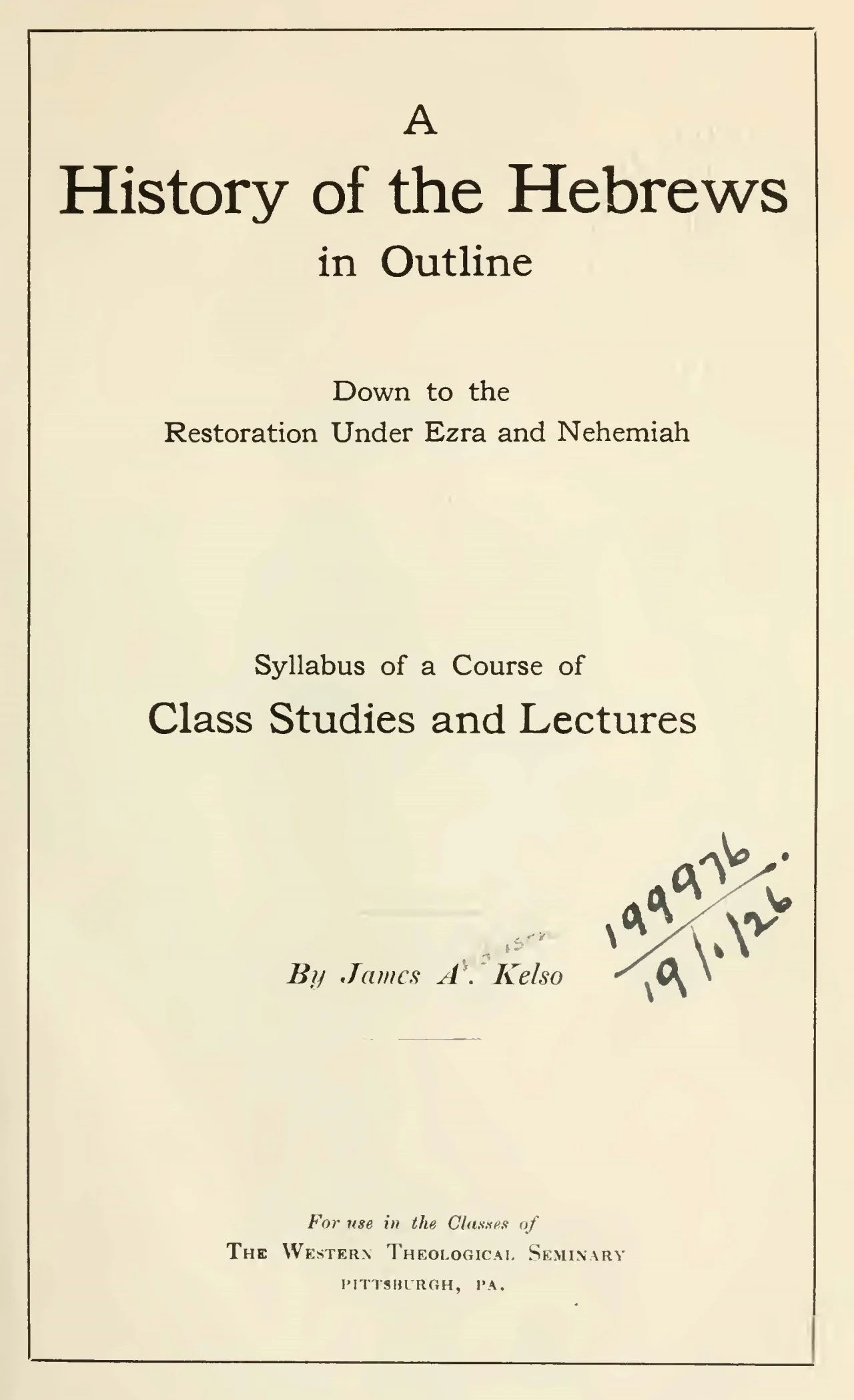 A History of the Hebrews in Outline Down to the Restoration Under Ezra and Nehemiah (1921)