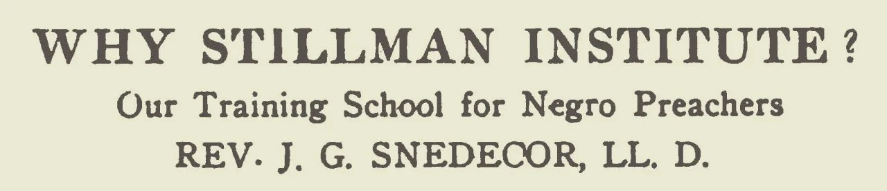 Why Stillman Institute? Our Training School For Negro Preachers (1912)