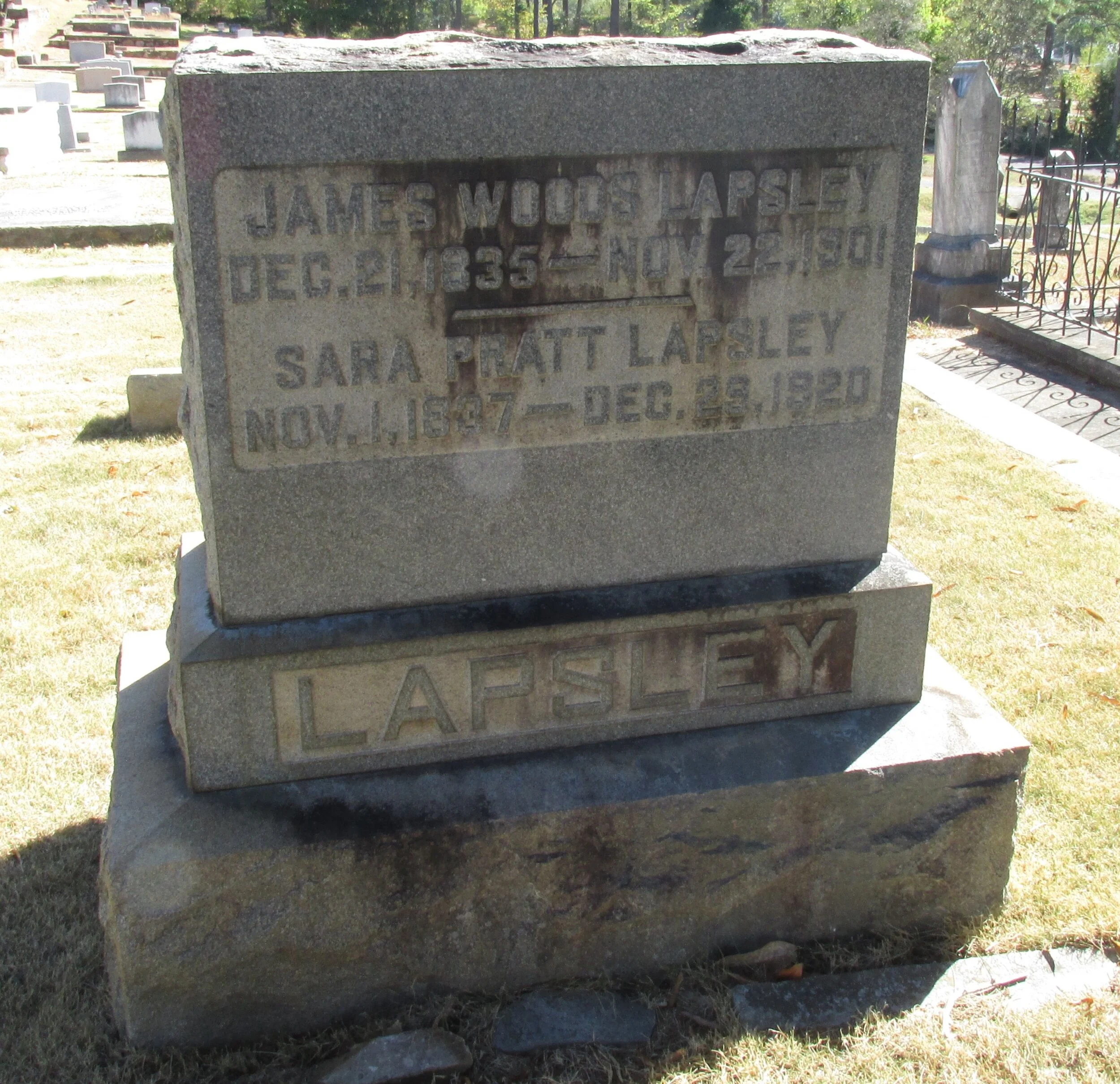 Sarah Pratt Lapsley is buried at Hillside Cemetery, Anniston, Alabama.